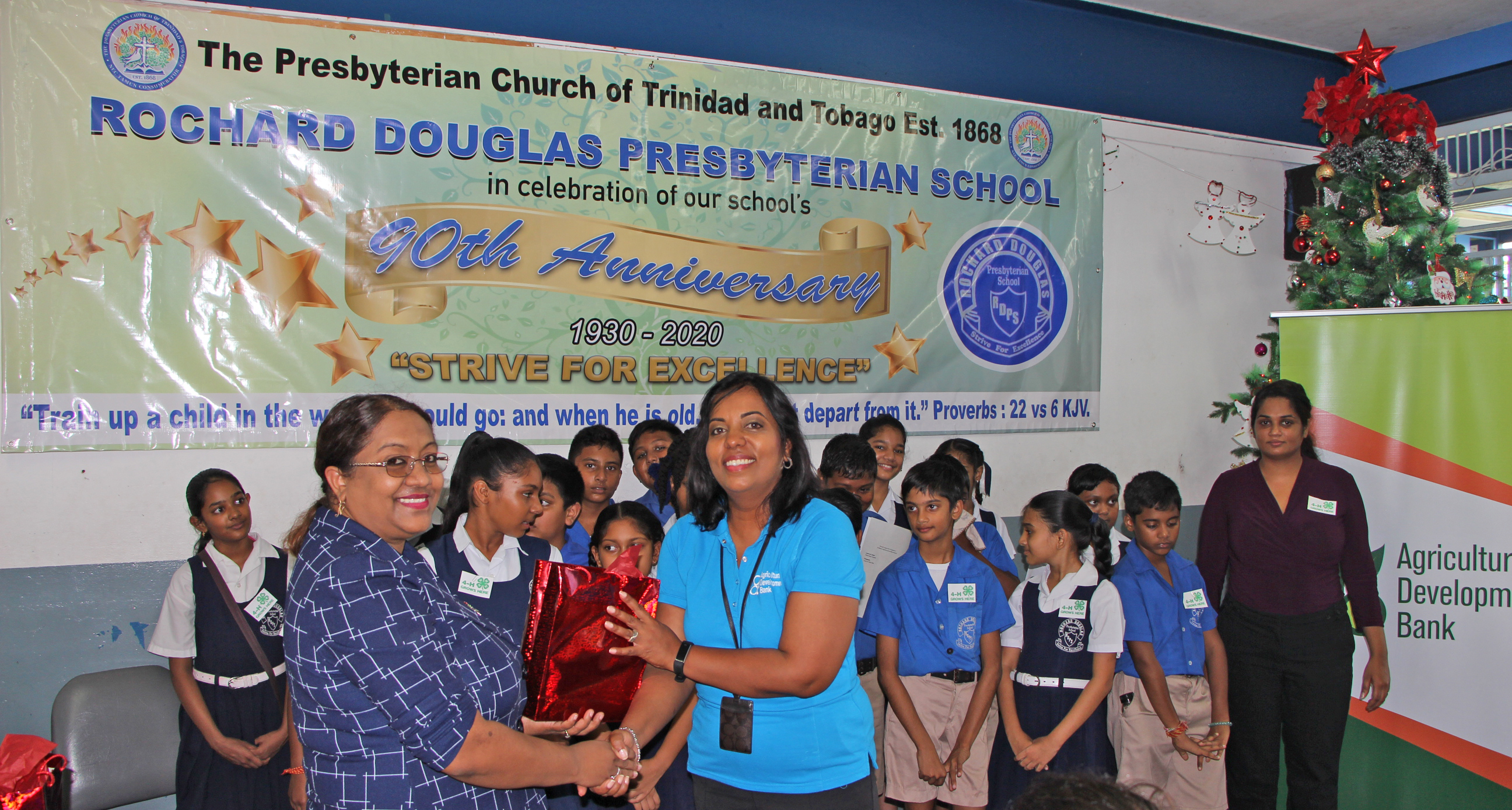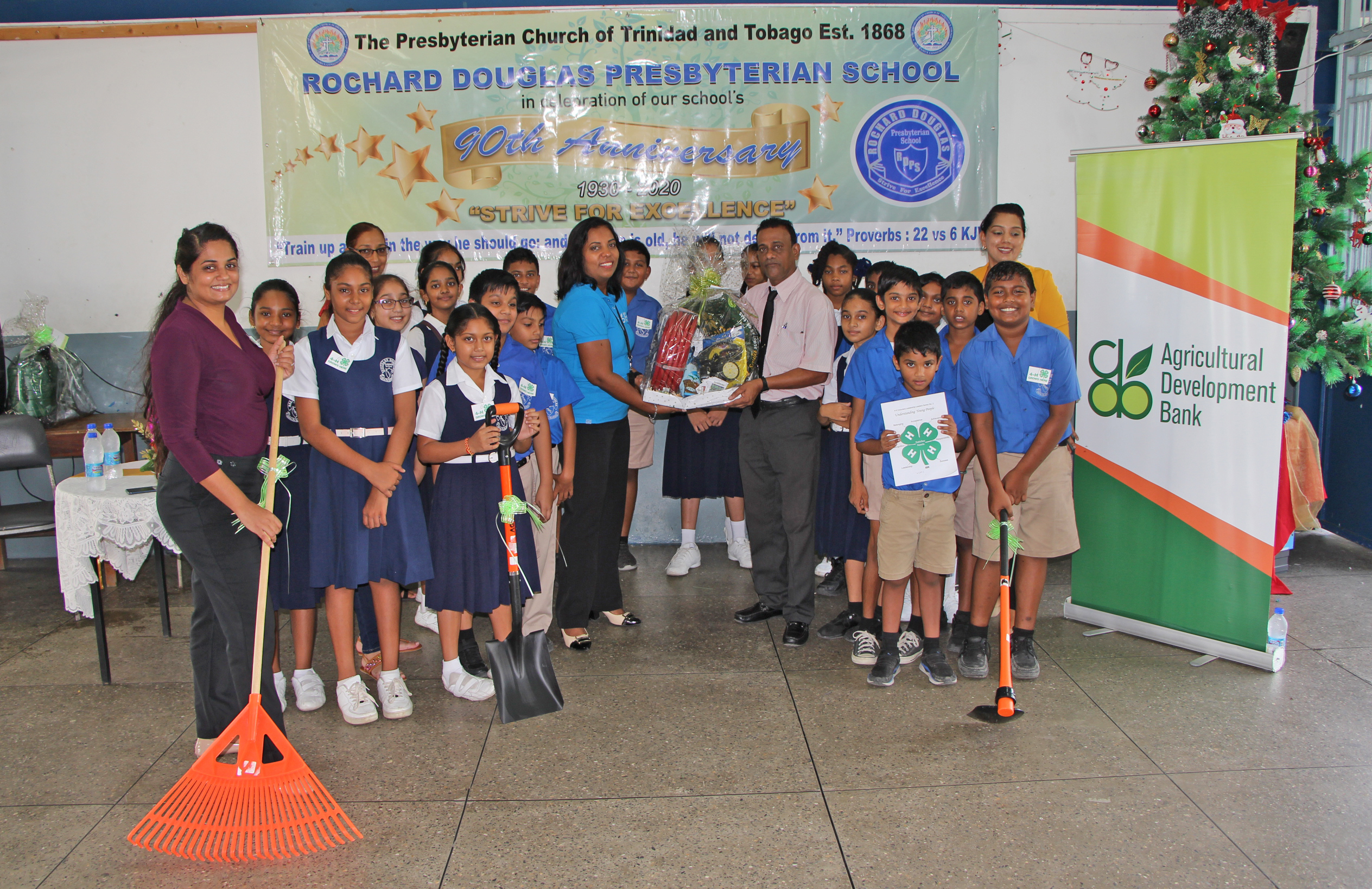 On December 3, 2019 the Agricultural Development Bank (ADB) visited the Rochard Douglas Presbyterian School in Barrackpore to meet with the students of its 4H Club. The ADB was approached to lend support to the Club’s agriculture project where the school is aiming to re-establish and maintain approximately two and a half (2-1/2) acres of land for a food crop project.